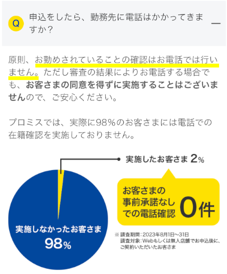 実際にプロミス公式サイトには「職場への電話連絡はしない」との記載があります。