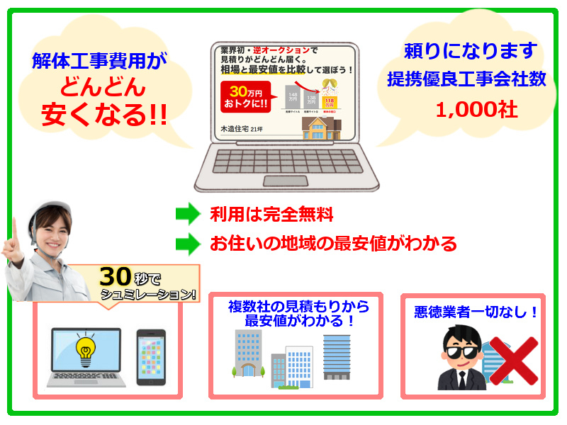今や、解体工事を考えている多くの方が最初に利用している定番サービスです。